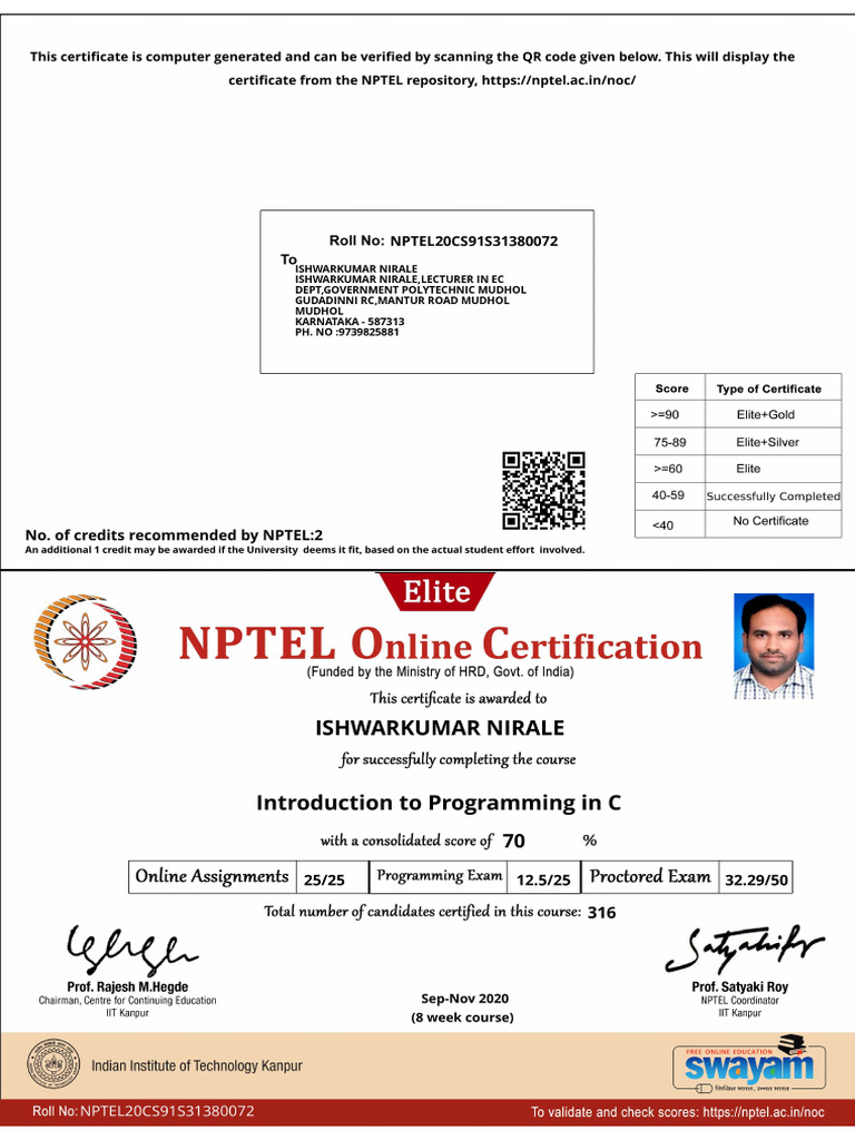 NPTEL Certificate 1 PDF