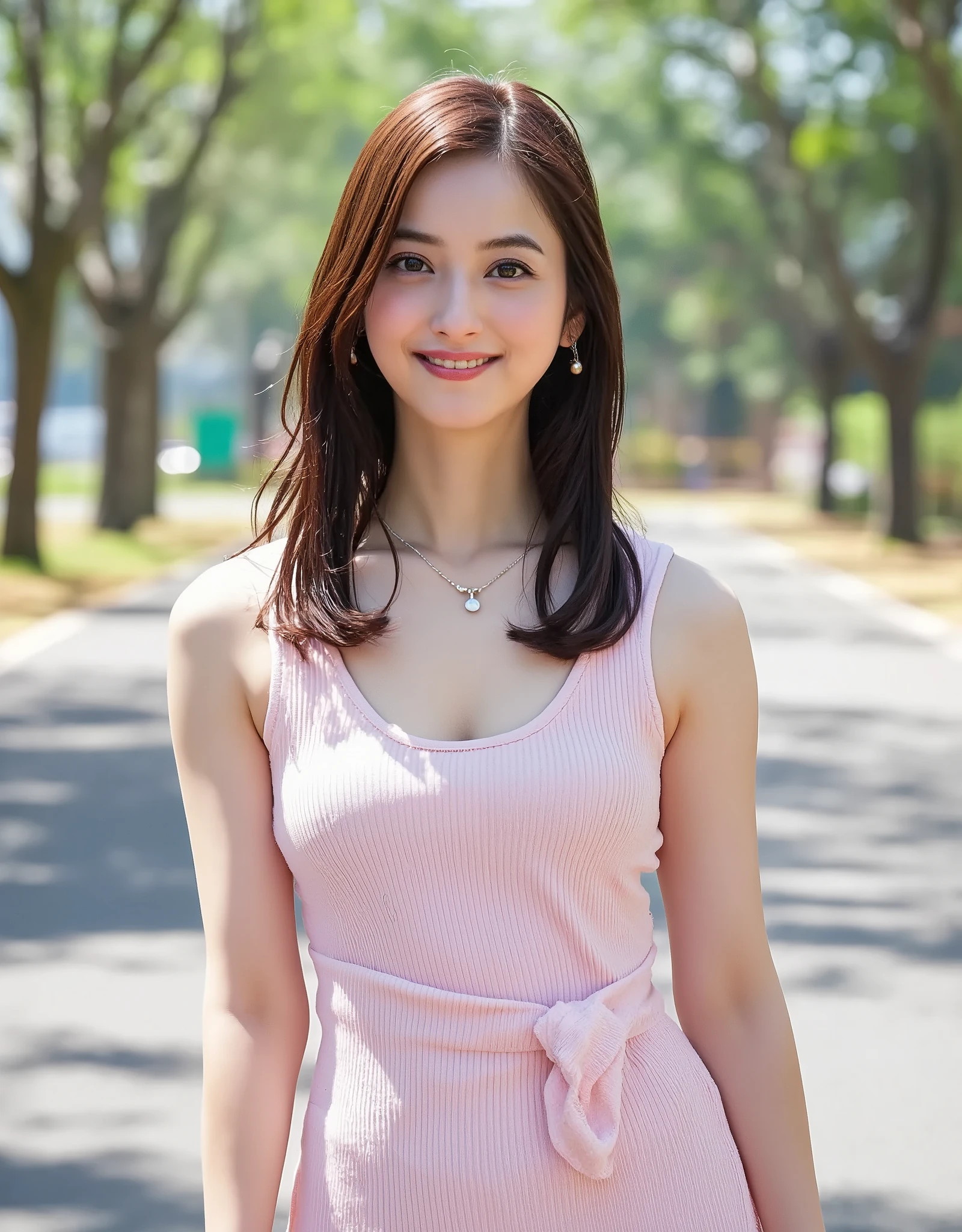 Arafed asian woman in a pink dress standing on a street SeaArt AI