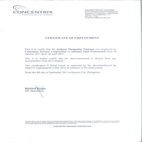 Here are some of the images for Concentrix Certificate Of Employment that we found in our website database.