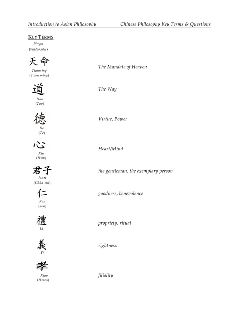 Intro to Chinese Philosophy Terms PDF Confucianism Tao