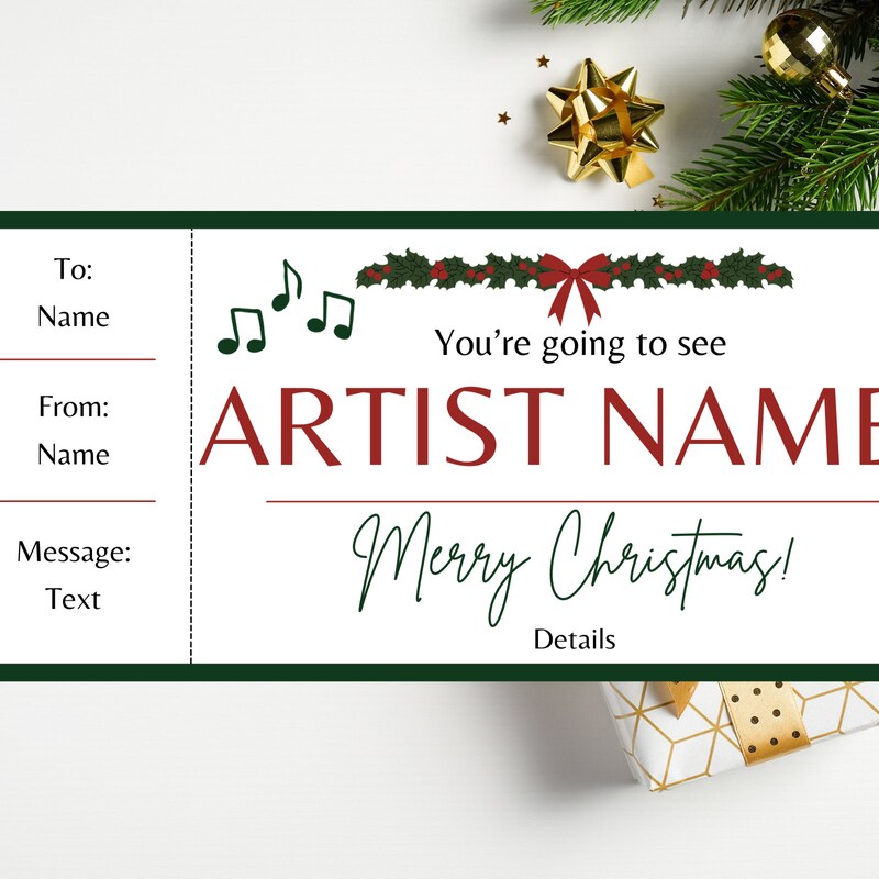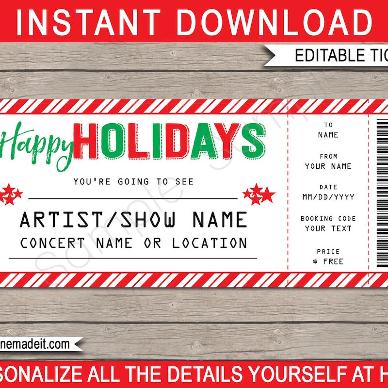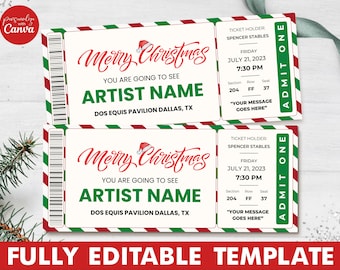 Concert Ticket Christmas Gift Editable Template Download Red and Green