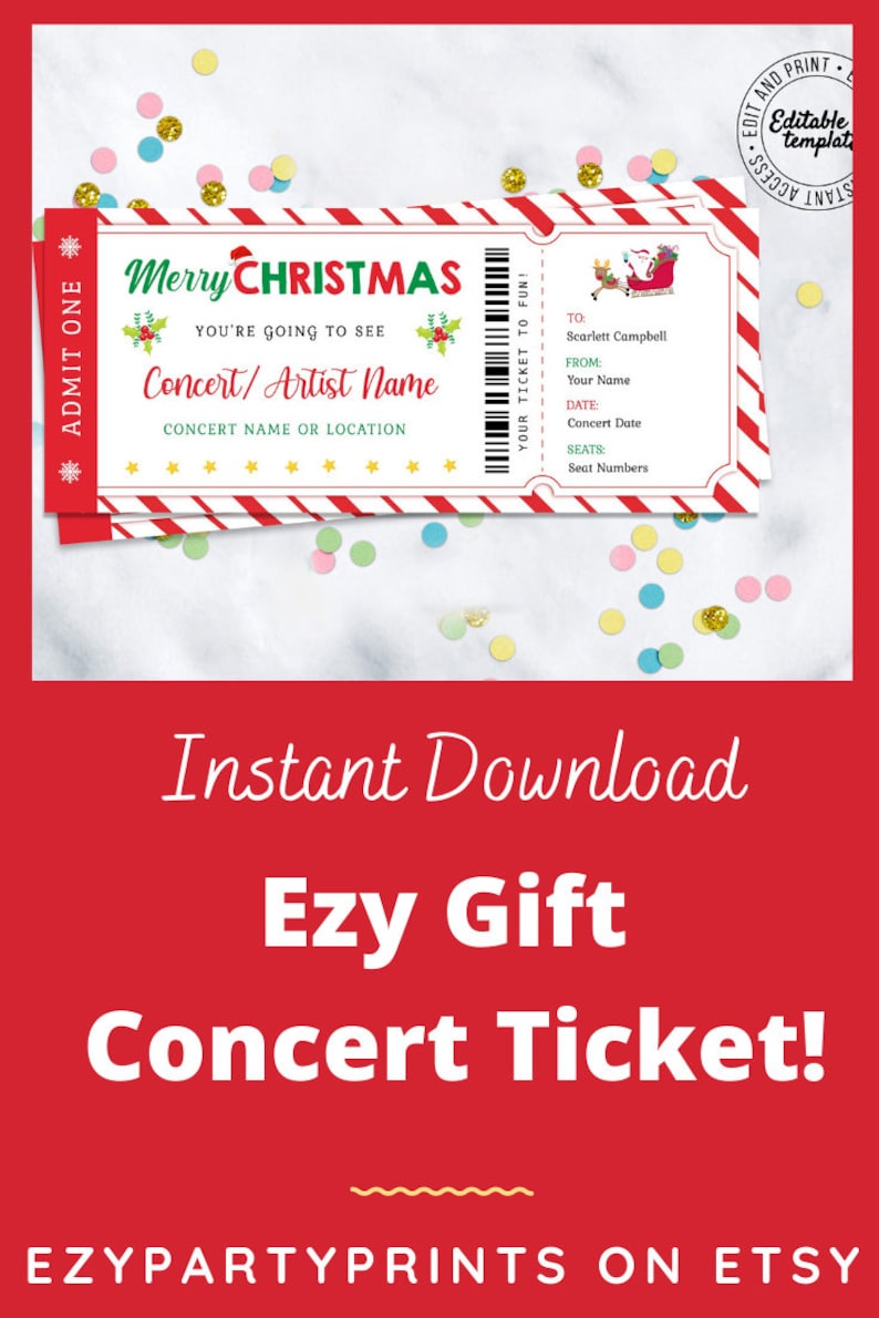 Printable Concert Ticket Christmas Gift Idea Editable Event Etsy