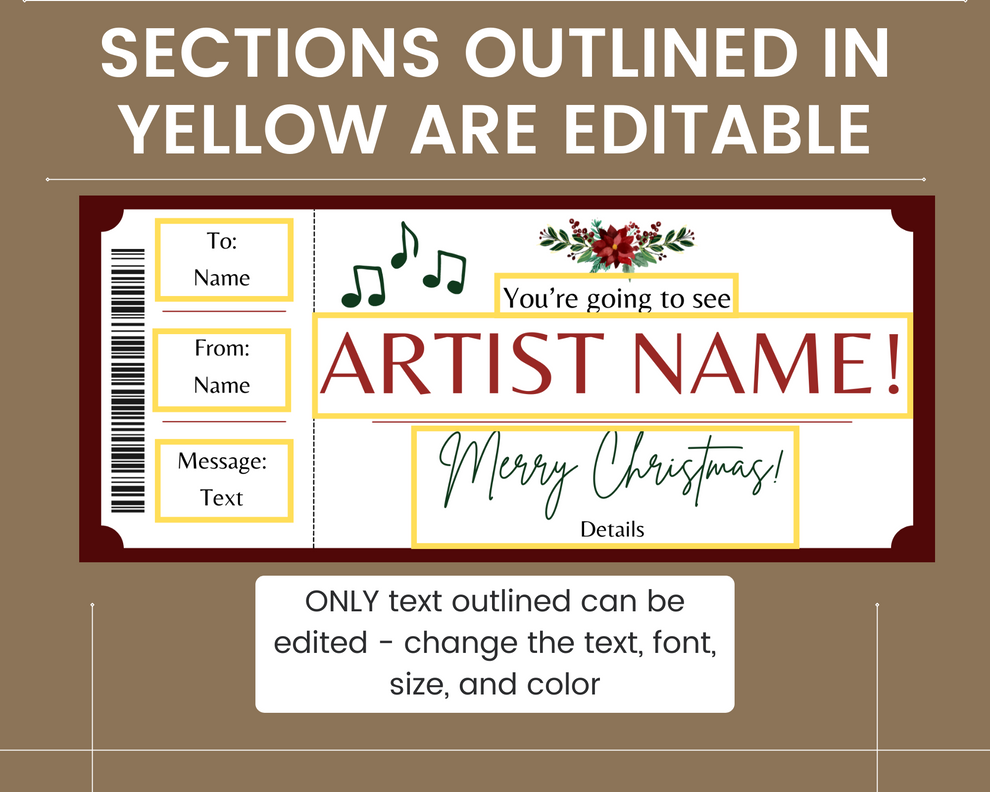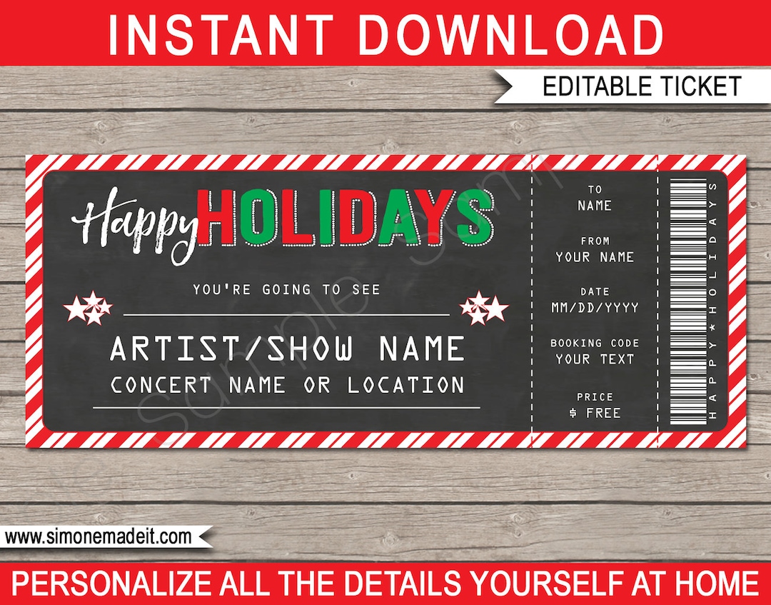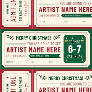 CHRISTMAS Concert Ticket Template EDITABLE Surprise Getaway Gift