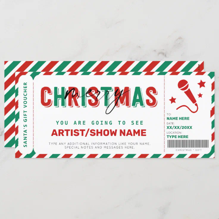 Christmas Gift Concert Ticket Template Voucher Zazzle