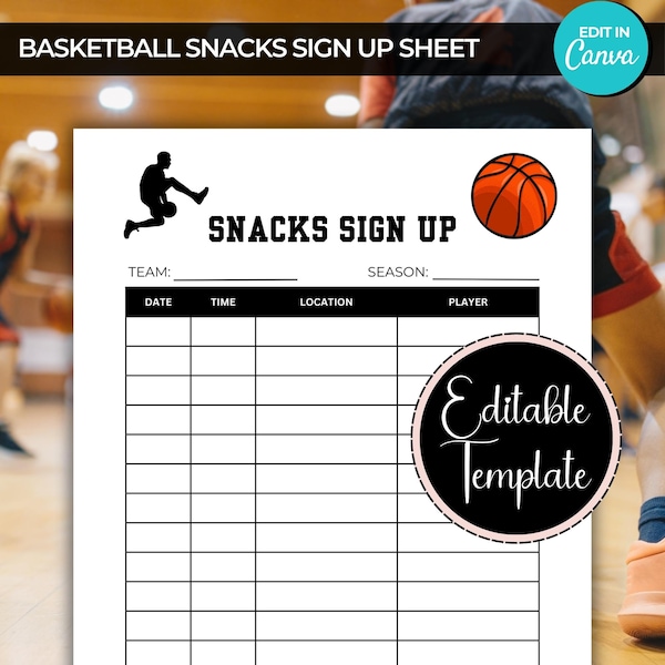 Gameday Snacks Sign up Sheet Snack Sign up Sheet for Basketball Team
