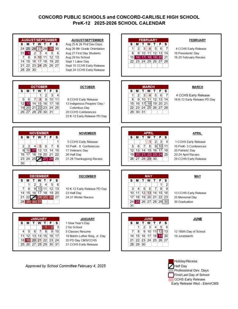 CONCORD PUBLIC SCHOOLS MA Calendar 25 26 Revised PDF EduCounty