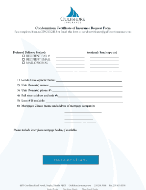 Condo Insurance Certificate Request Doc Template pdfFiller