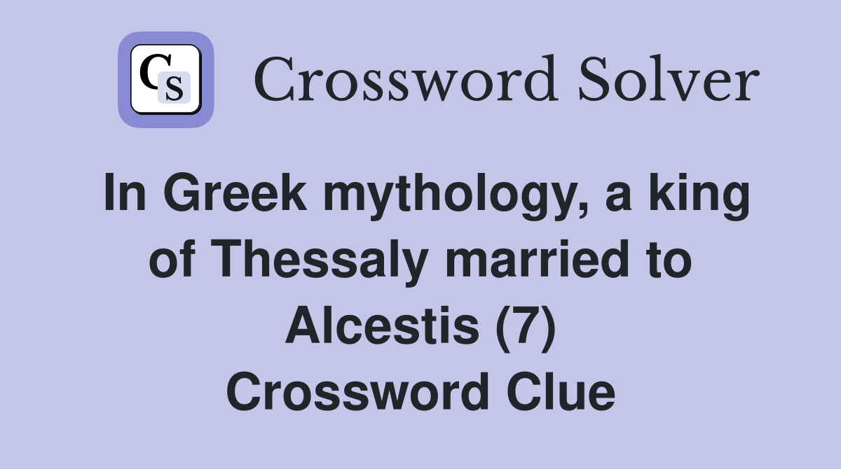 In Greek mythology a king of Thessaly married to Alcestis (7