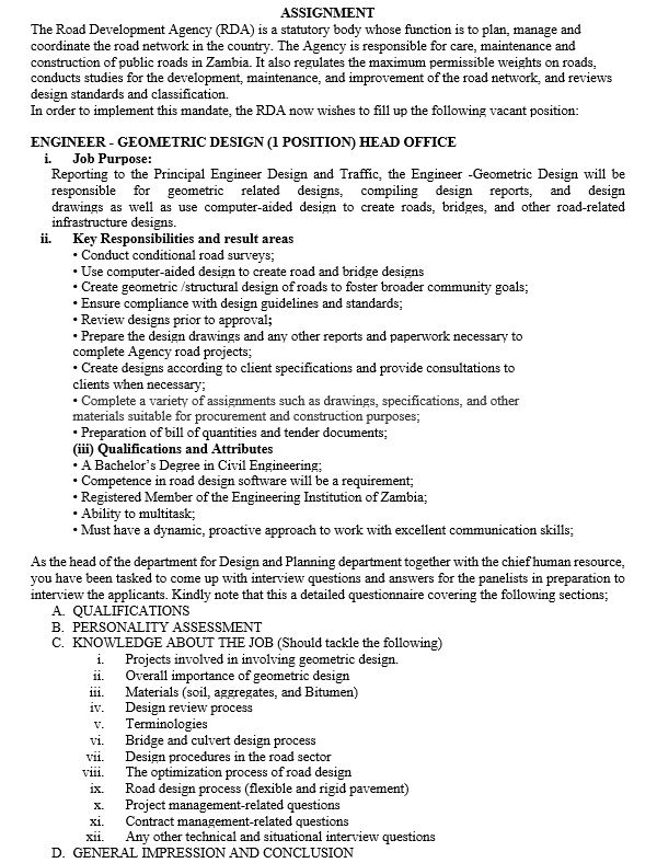 Solved ASSIGNMENT The Road Development Agency (RDA) is a Chegg com