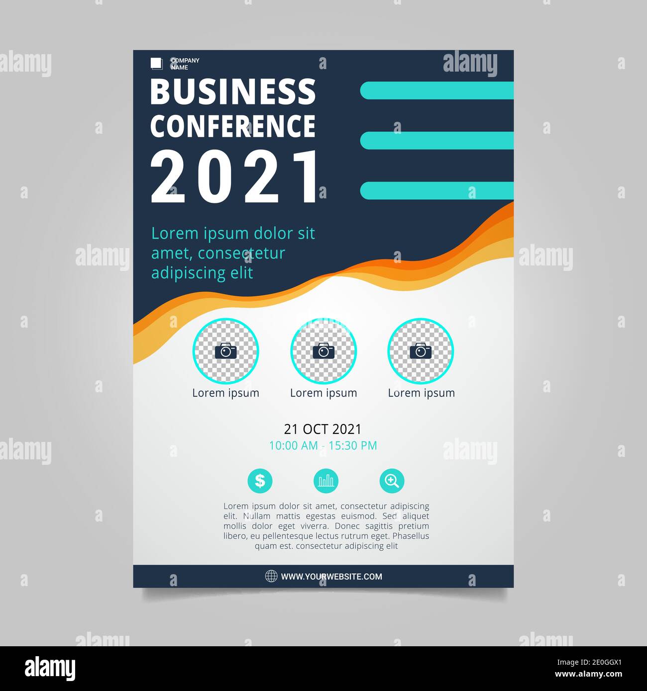 Flat business conference brochure template with wavy shapes Stock