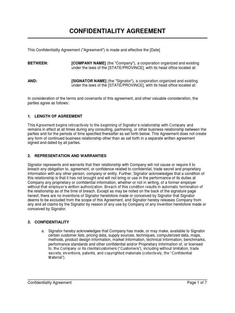 Company Employee Confidentiality Agreement Template Google Docs Word