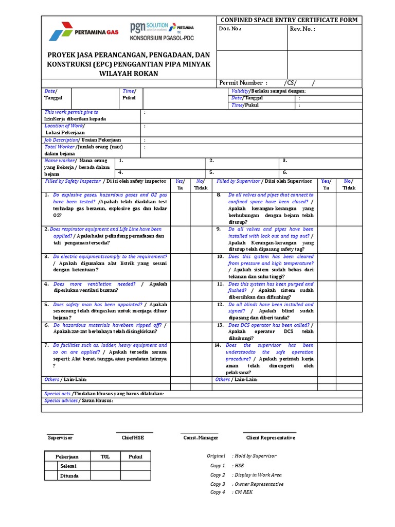 Free Confined Space Certificate Template