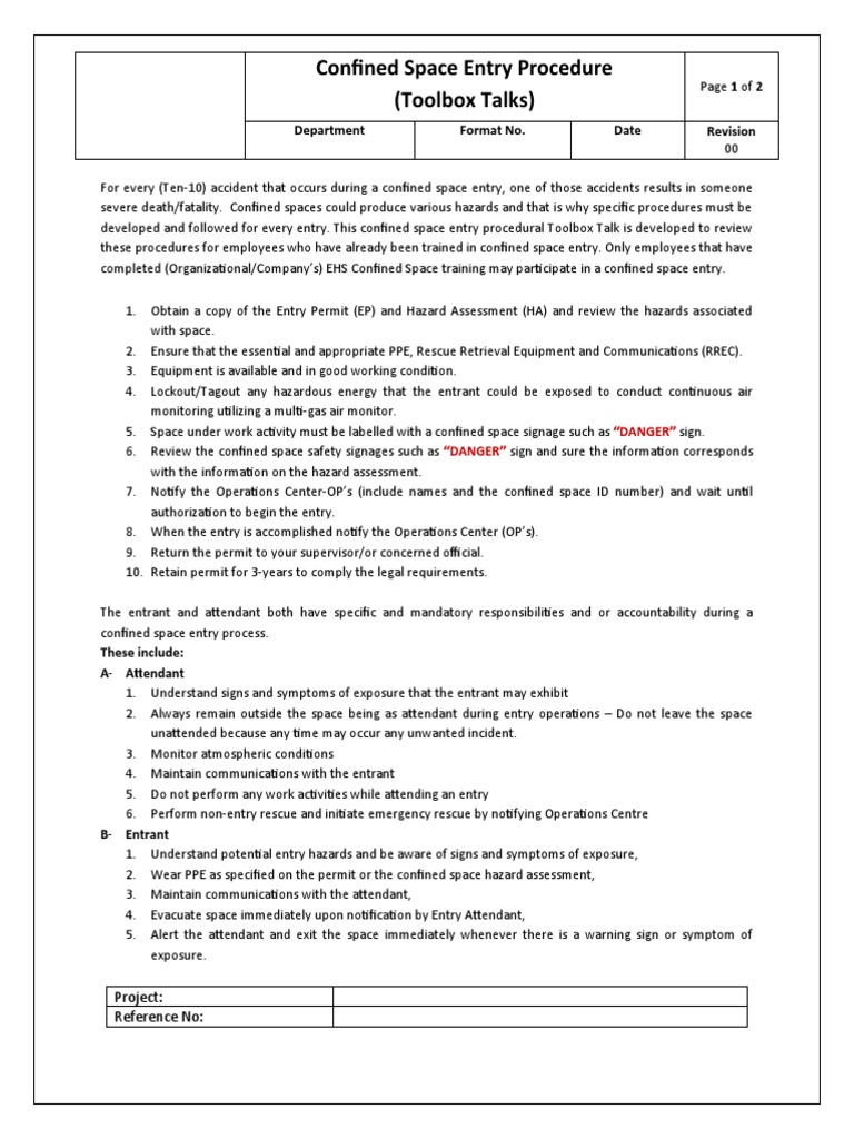 Download Confined Space Procedure Template (MS Word) PDF Carbon