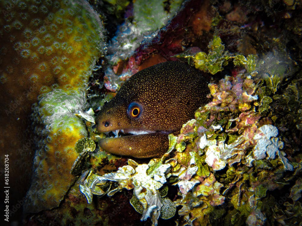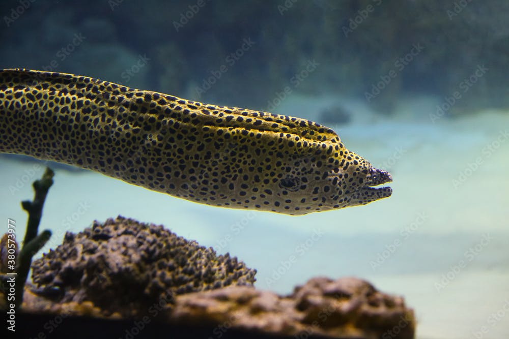 Gymnothorax Miliaris the Goldentail Moray or Conger Moray is a Stock