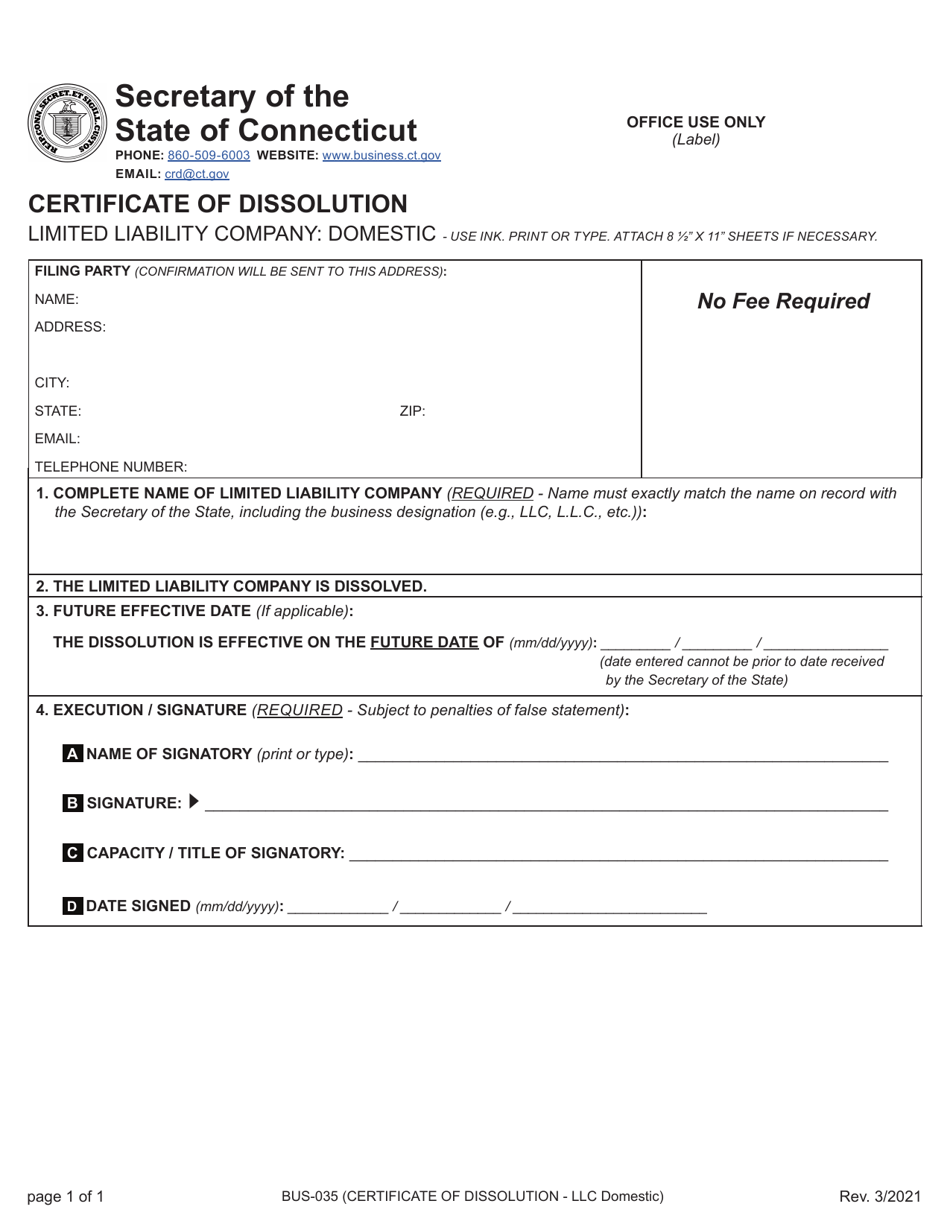 Connecticut Certificate of Dissolution Limited Liability Company