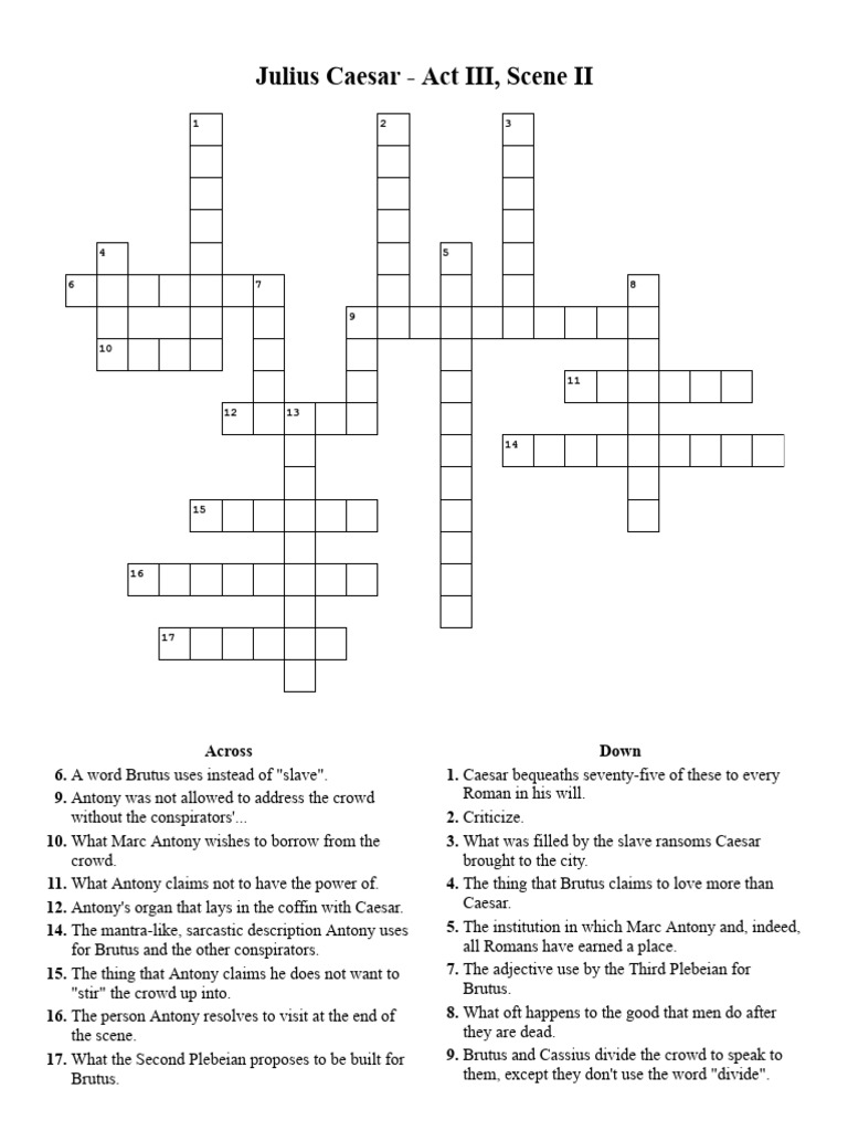 Crossword Julius Caesar Act III Scene II PDF