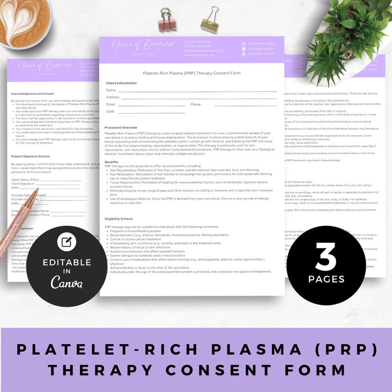PRP Consent Form Template Editable Treatment Forms Platelet Rich