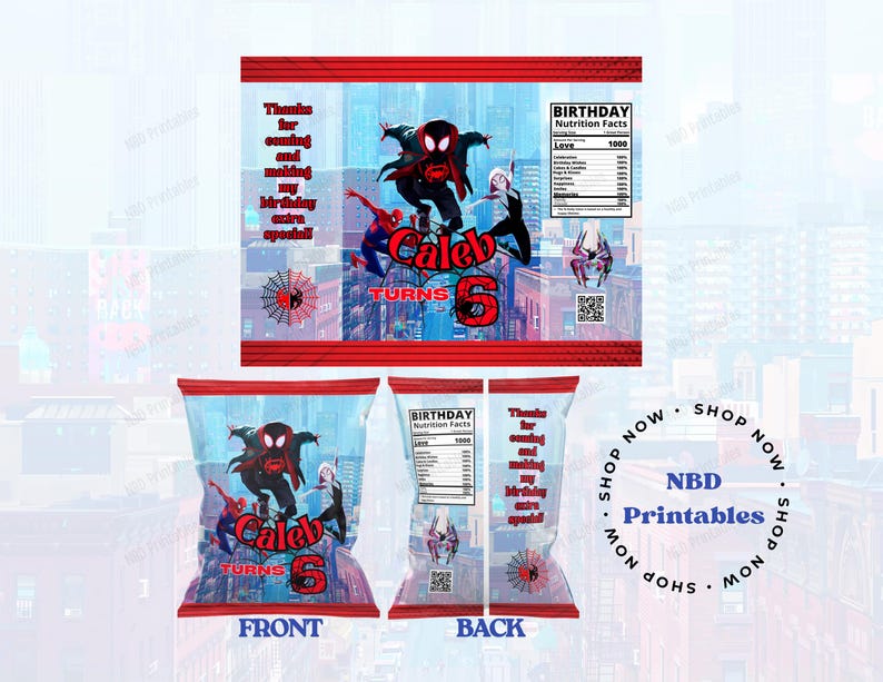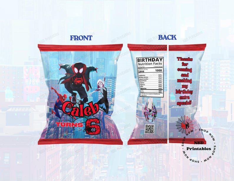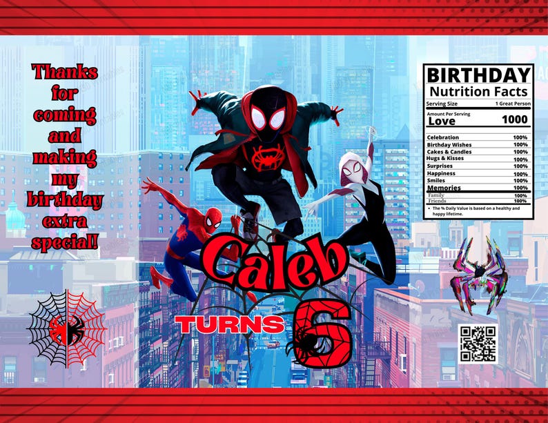 Spider man Editable Chip Bag Template Superhero Party Favor Wrapper