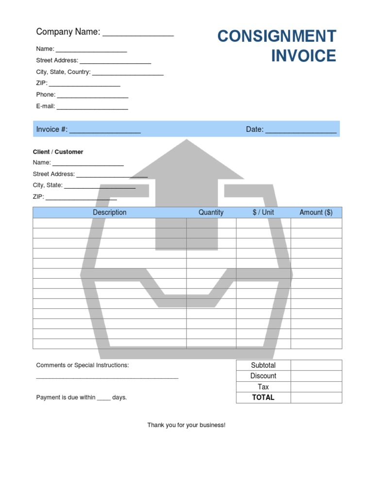Consignment Invoice Template