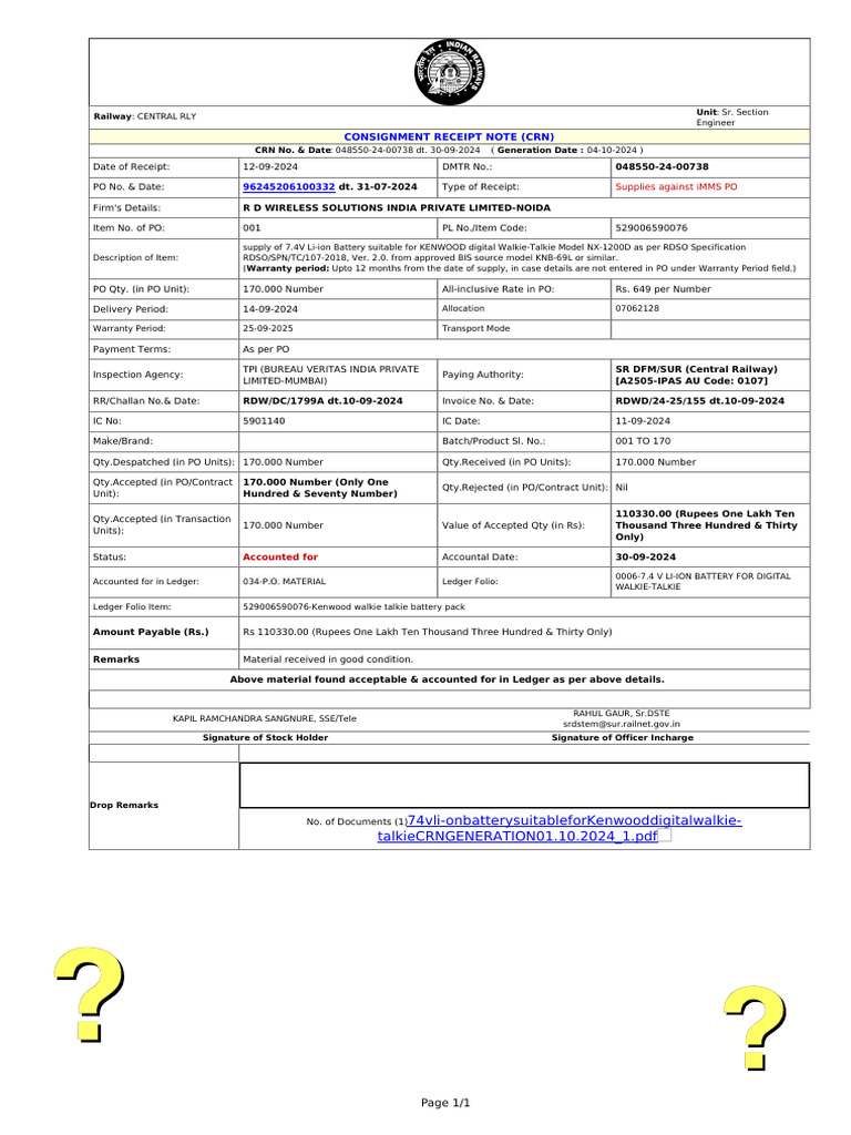 Consignment Receipt Note (CRN) : Signature Not Verified PDF