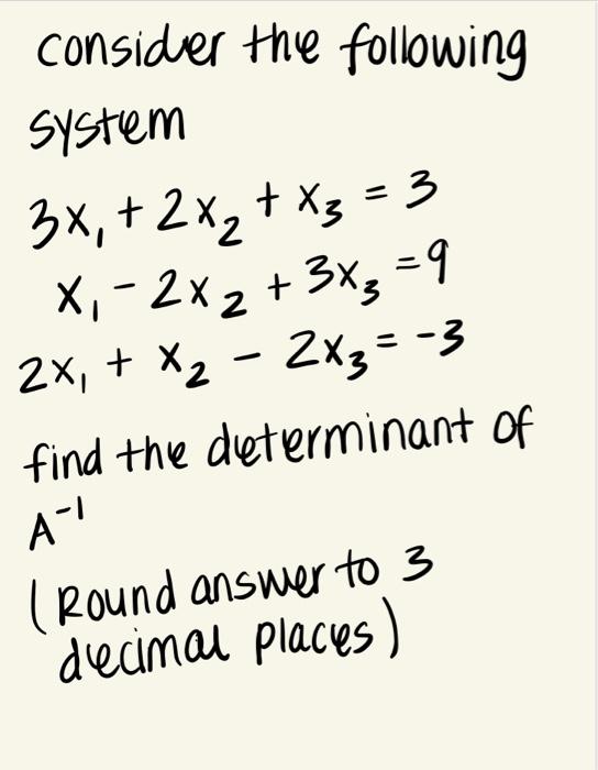 Solved consider the following System 3x 2x2 x3 = 3 X Chegg com