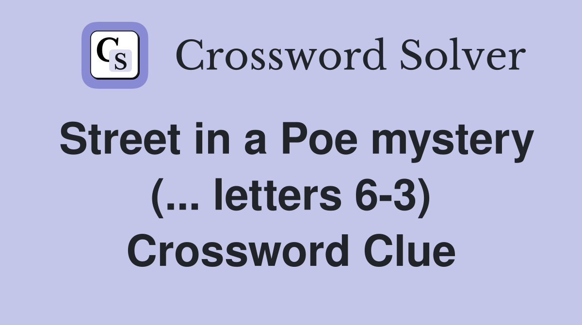 Street in a Poe mystery ( letters 6 3) Crossword Clue Answers