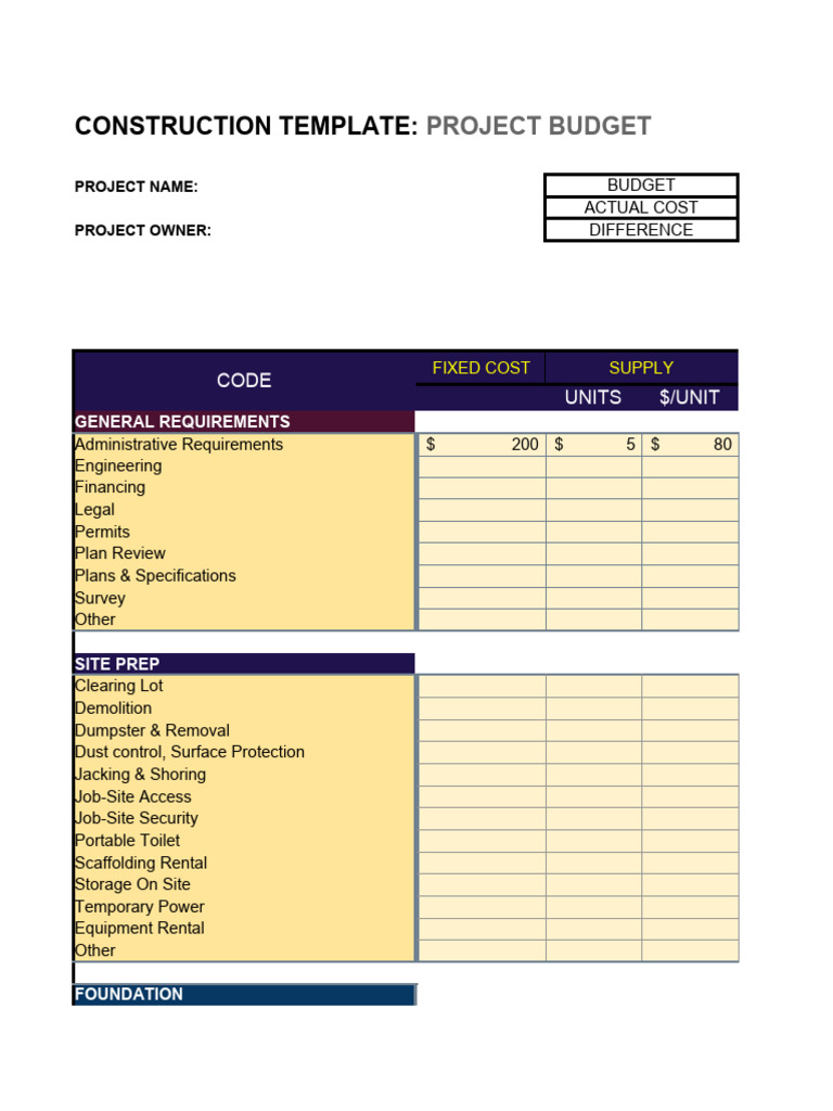 Construction Budget Excel Template