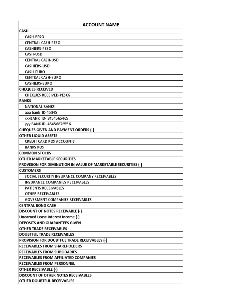 Chart of Accounts Revised Chart of Accounts Account Name Financial