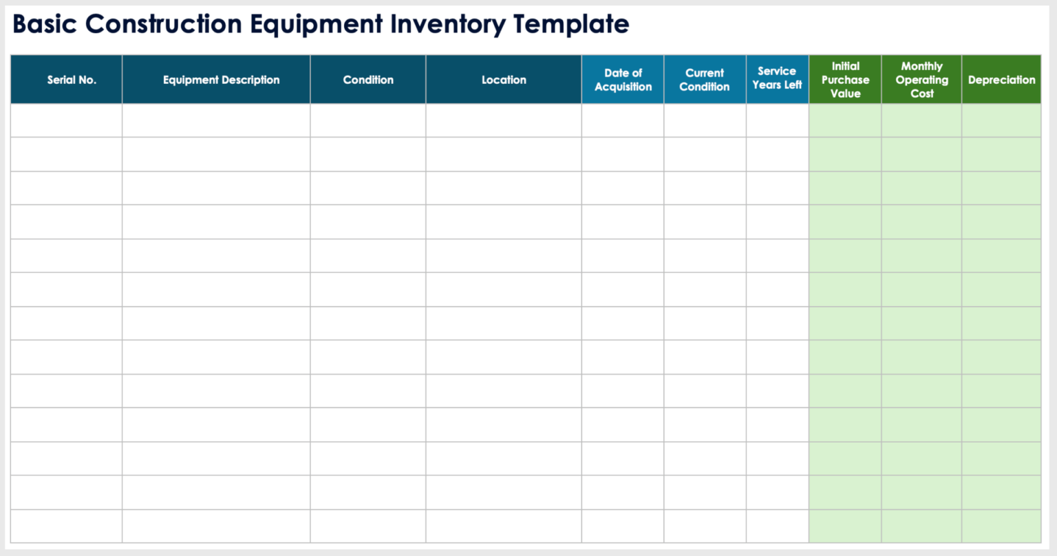 Construction Equipment Inventory Template
