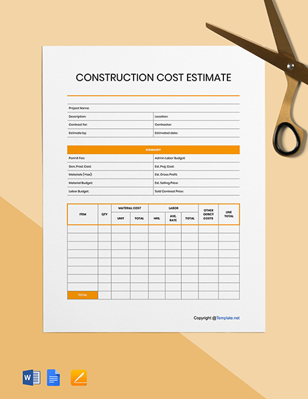 Construction House Cost Estimate Template in Word Google Docs Pages
