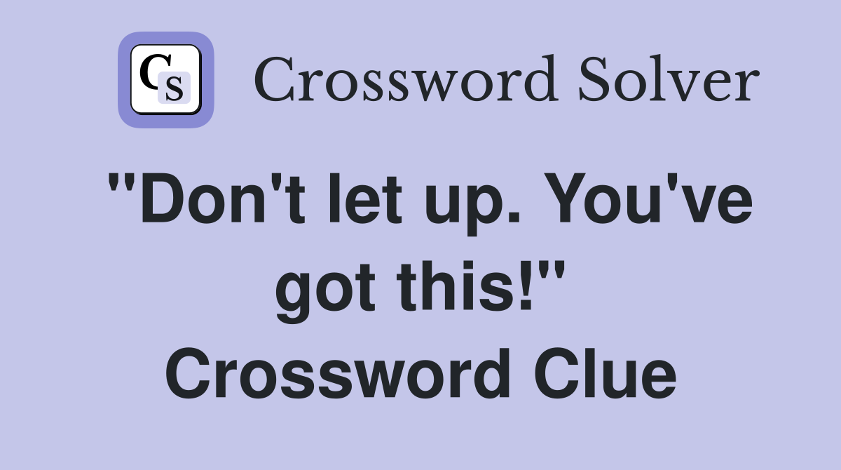 quot Don #39 t let up You #39 ve got this quot Crossword Clue Answers Crossword