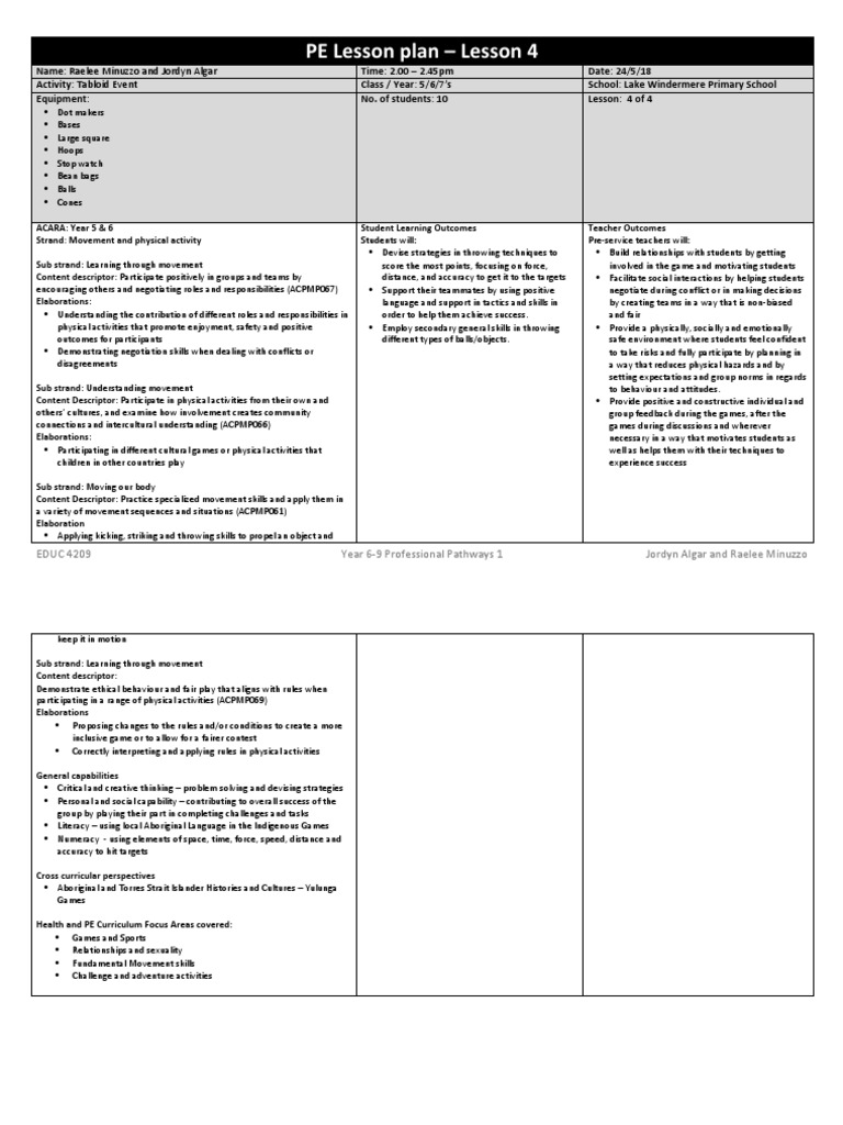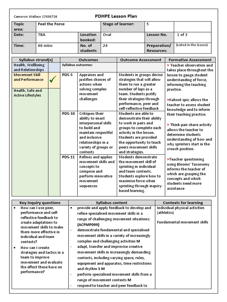 Pdhpe Lesson Plan 1c Final PDF Pedagogy Teachers