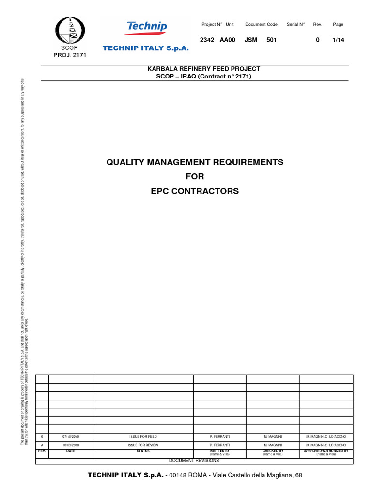 2342 Aa00 Jsm 501 0 Quality Management Requirement For Epc