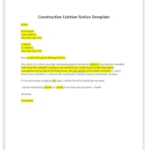 Constructive Eviction Letter Sample Template with Examples