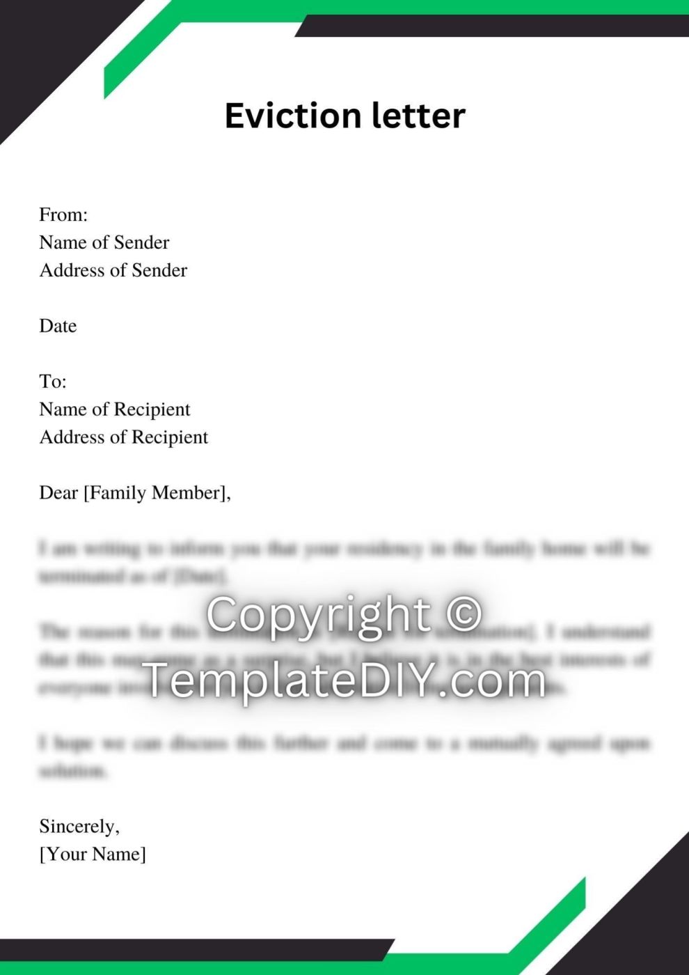 Template Family Member Eviction Notice Letter prntbl