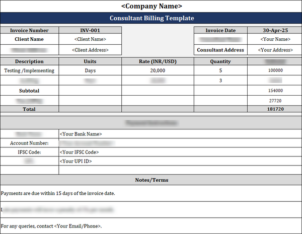 Professional Consultant Invoices: Free Templates in Word Excel Google