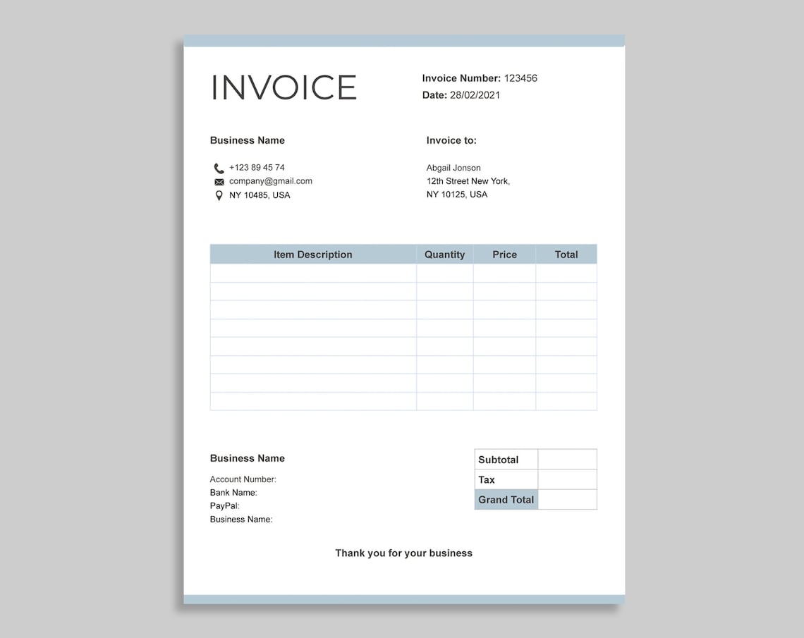 Invoice Template Etsy