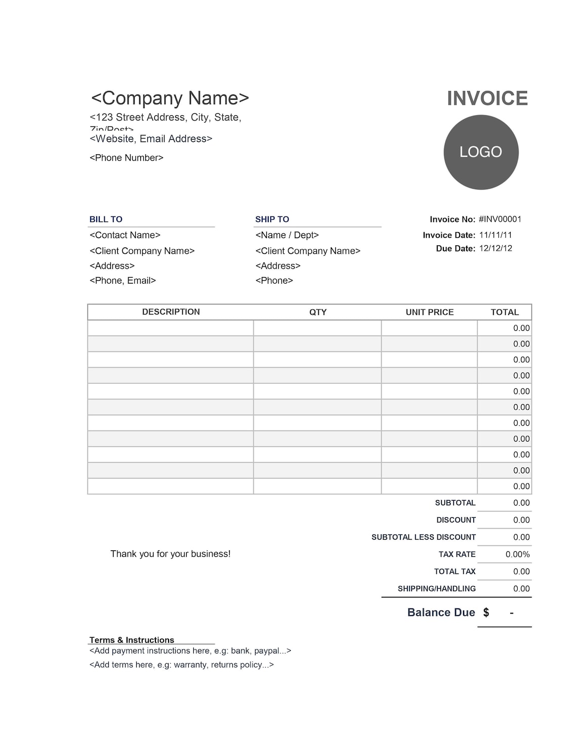 Downloadable Free Invoice Templates