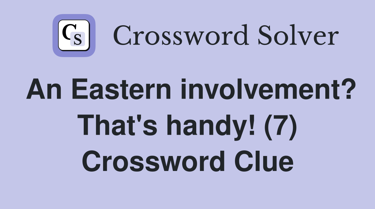 An Eastern involvement? That #39 s handy (7) Crossword Clue Answers
