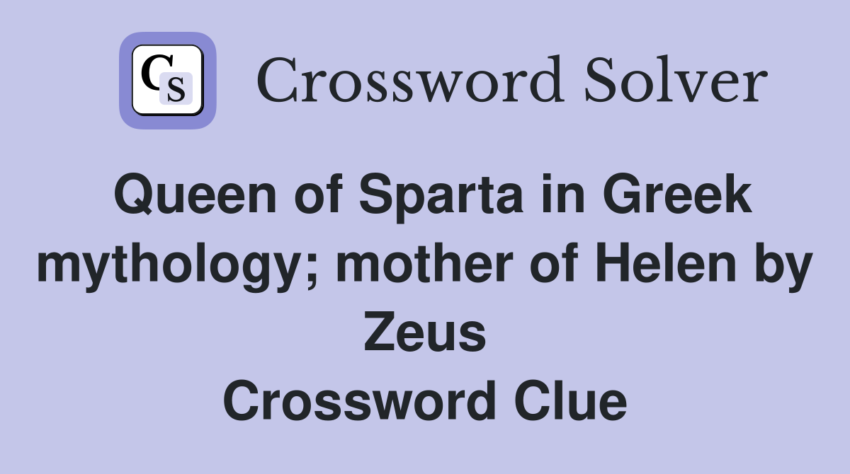 Queen of Sparta in Greek mythology mother of Helen by Zeus Crossword