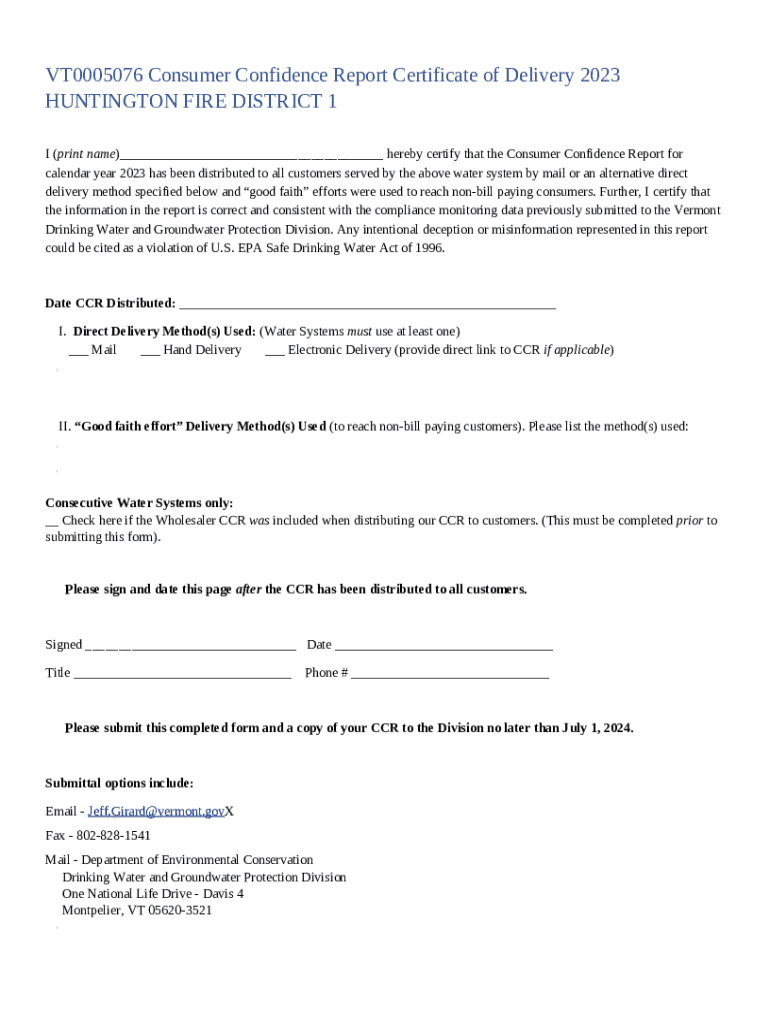 Massachusetts Consumer Confidence Report Certification Form Fill Out