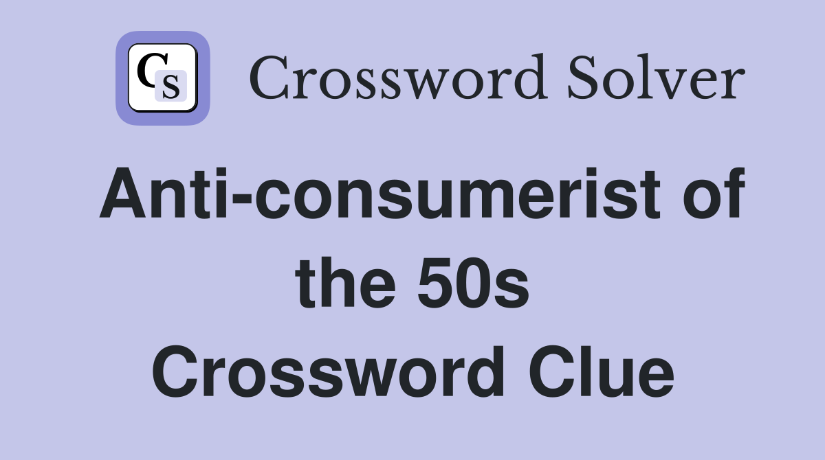 Anti consumerist of the 50s Crossword Clue Answers Crossword Solver