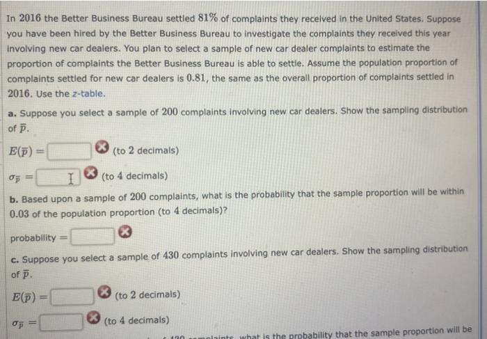 Solved In 2016 the Better Business Bureau settled 76% of Chegg com