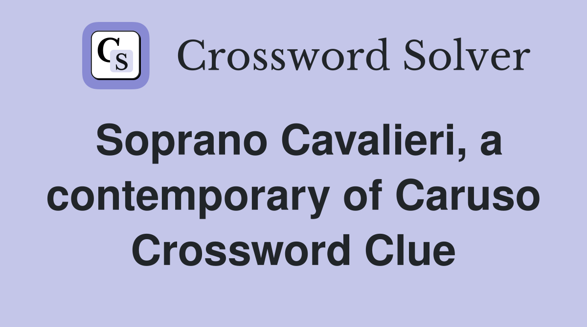 Soprano Cavalieri a contemporary of Caruso Crossword Clue Answers