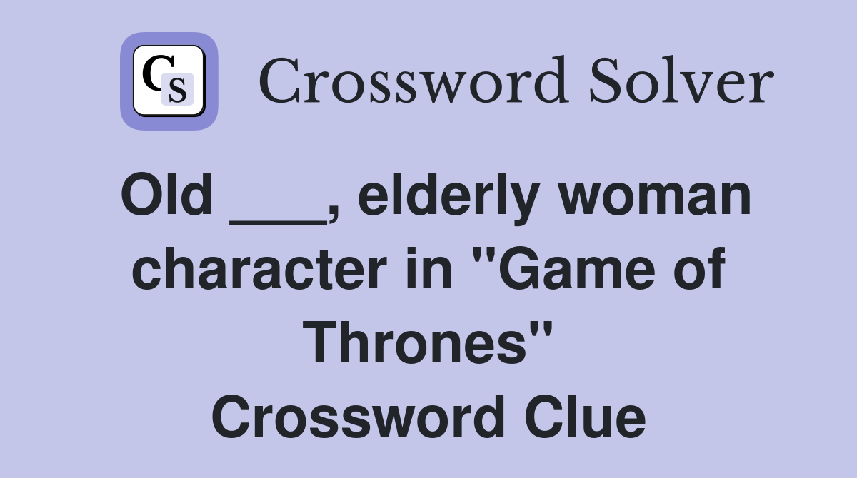 Old elderly woman character in quot Game of Thrones quot Crossword Clue