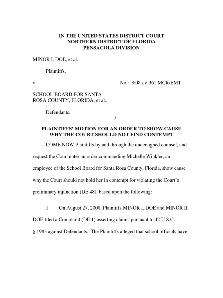 Motion for Order to Show Cause Why the Court Should Not Find Contempt