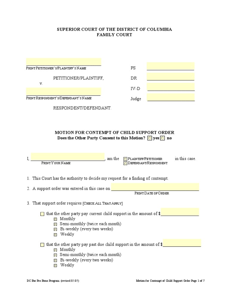 Motion For Contempt of Child Support Order Child Support Contempt