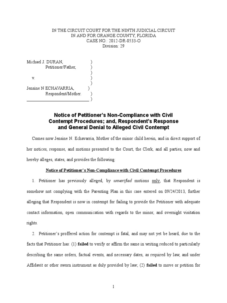 Notices and Response To Contempt PDF Contempt Of Court Parenting