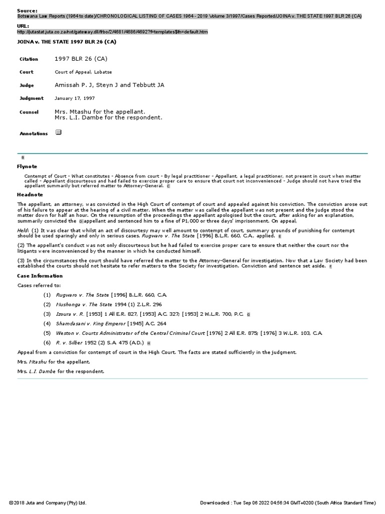 JOINA v THE STATE 1997 BLR 26 (CA) PDF Contempt Of Court