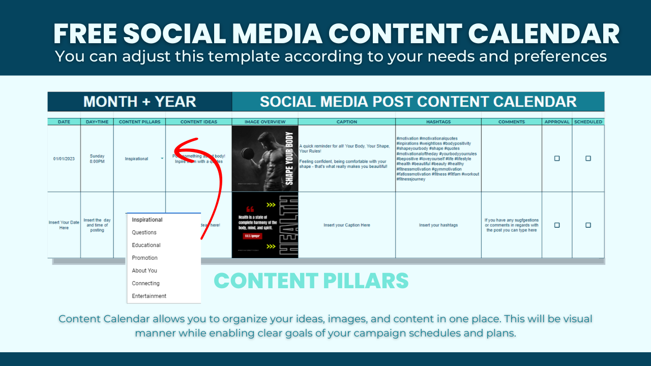 Social Media Content Calendar Template Monthly Content Planner